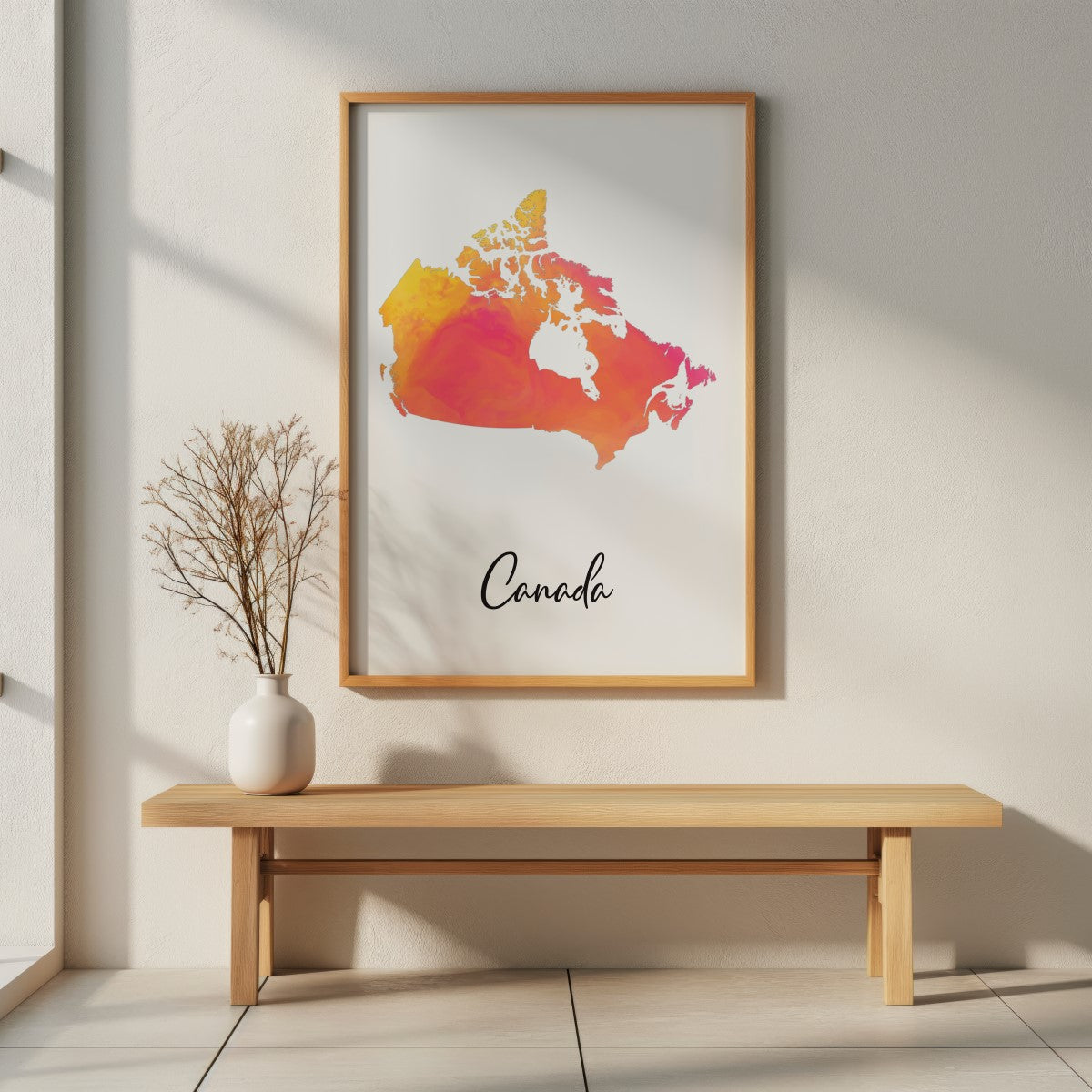 Celebrate your story with a map of Canada set against artistic, colorful backgrounds. Whether it's where you're from or where you've been, our prints will capture your unique journey.
